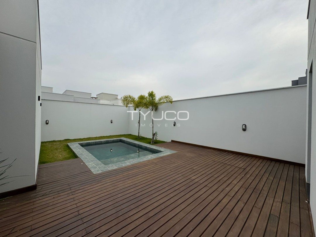 A casa está localizada no renomado Loteamento Bosque da mata. O local possui infraestrutura completa, com áreas de lazer proporcionando mais qualidade de vida e conforto para os moradores. O imóvel dispõe de quatro dormitórios, sendo um suíte com closet, garagem coberta para dois carros, pé direito duplo, persianas automatizadas em todos os dormitórios, passagem lateral e área de churrasqueira com piscina e deck, ideal para momentos relaxantes com a família e amigos. Oportunidade perfeita para você que procura uma casa moderna e sofisticada.