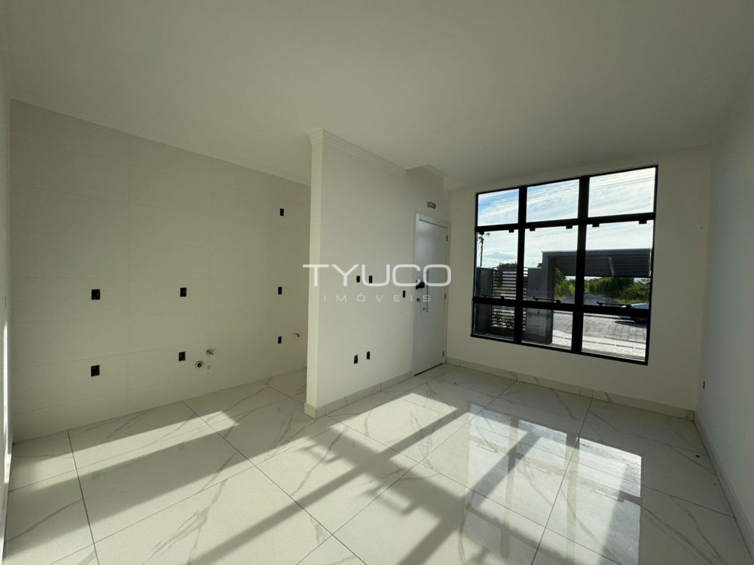 O imóvel conta com dois dormitórios, sendo uma suíte, sala e cozinha integradas, banheiro social, área de serviço e vaga de garagem descoberta. A passagem lateral proporciona mais privacidade e facilidade no dia a dia.